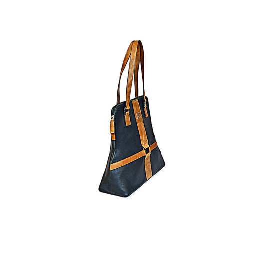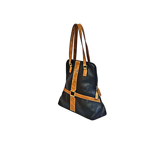 Syraah Classic Cross Tote - Black & Tan Premium Leather Bag