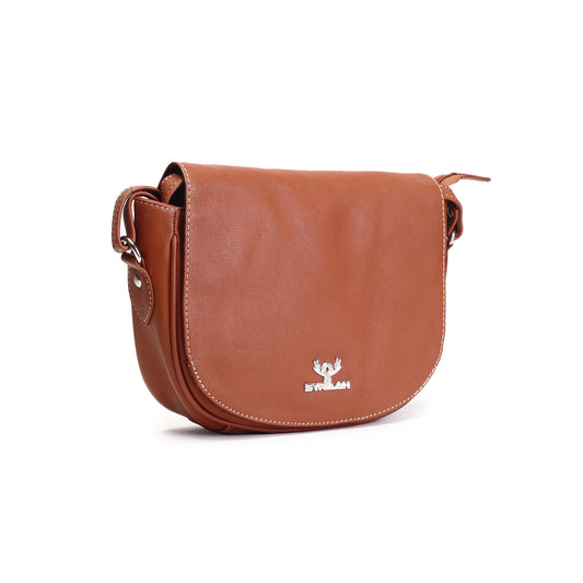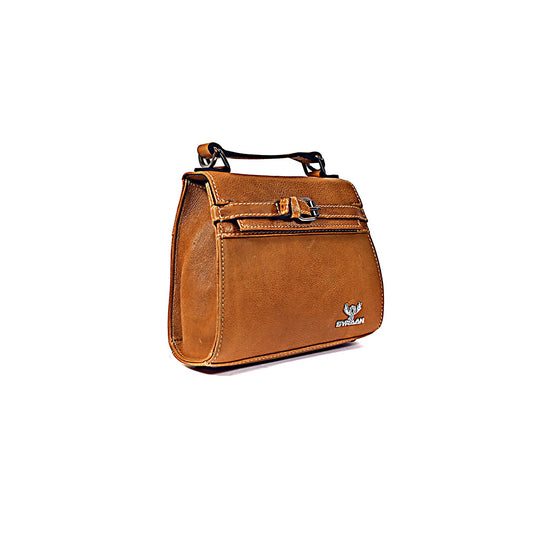Syraah Compact Leather Handbag - Tan Premium Stylish Crossbody