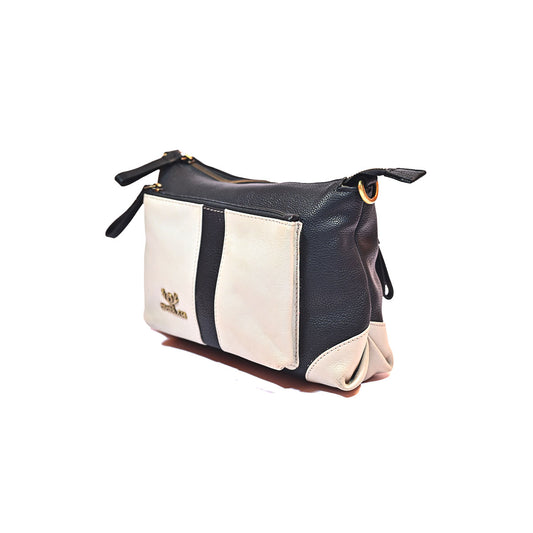 Syraah Chic Sling - Cream & Navy Blue Premium Leather Bag