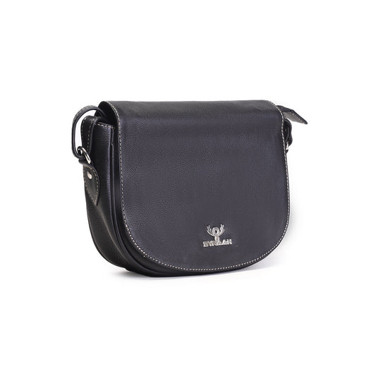 Syraah Black Full-Grain Leather Saddle Crossbody Bag