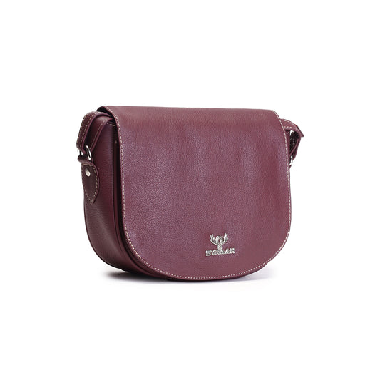 Syraah Maroon Full-Grain Leather Saddle Crossbody Bag