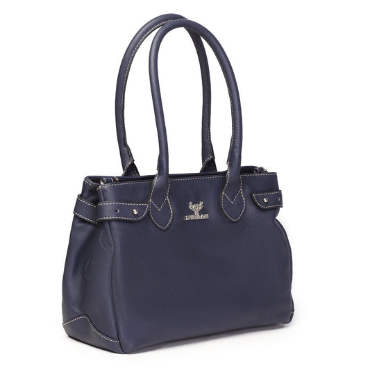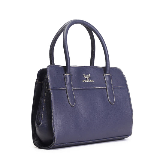 Syraah Navy Blue Full-Grain Leather Executive Handbag