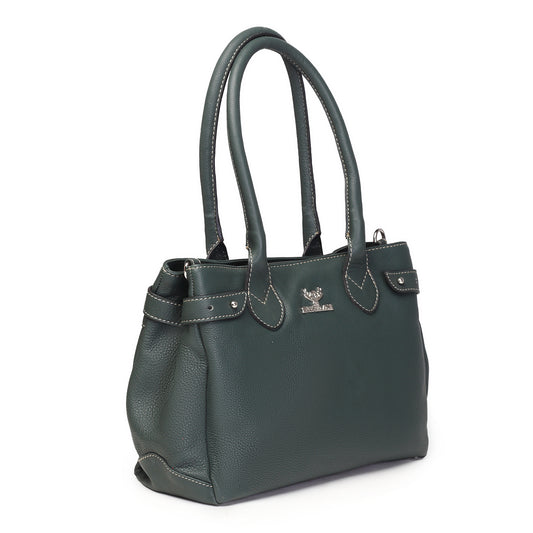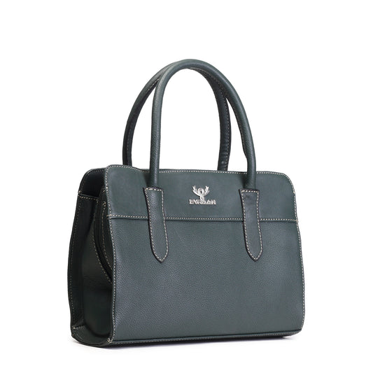 Syraah Elegant Handbag - Bottle Green - Full Grain Leather