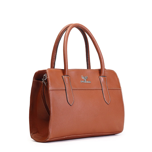 Syraah Tan Full-Grain Leather Executive Handbag