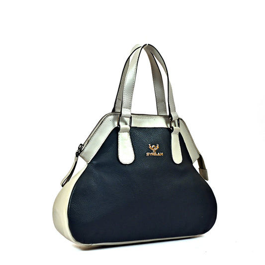 Syraah Dual Elegance - Ash & Navy Blue Leather Handbag