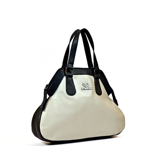 Syraah Pastel Elegance - White & Black Premium Leather Handbag