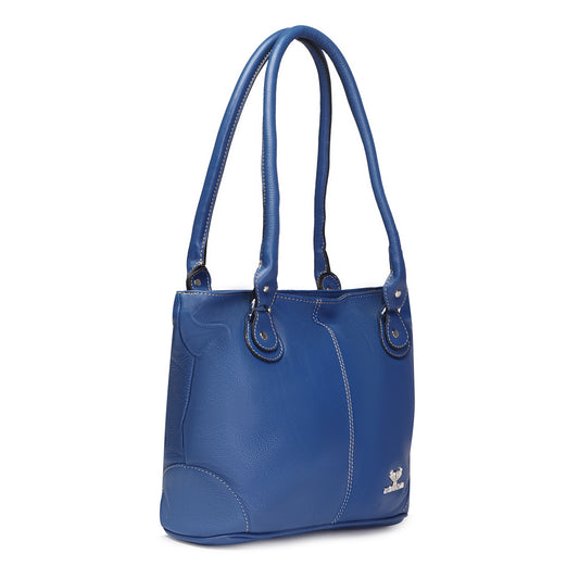 Syraah Blue Full-Grain Leather Shoulder Tote Bag