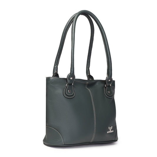 Syraah Bottle Green Full-Grain Leather Shoulder Tote Bag