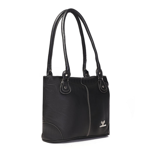 Syraah Black Full-Grain Leather Shoulder Tote Bag