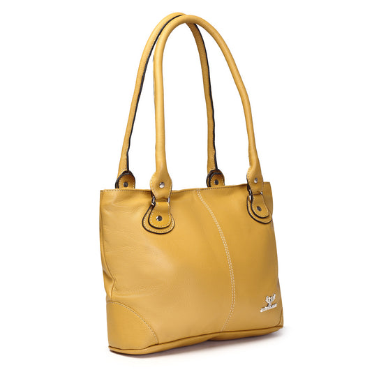 Syraah Mustard Yellow Full-Grain Leather Shoulder Tote Bag