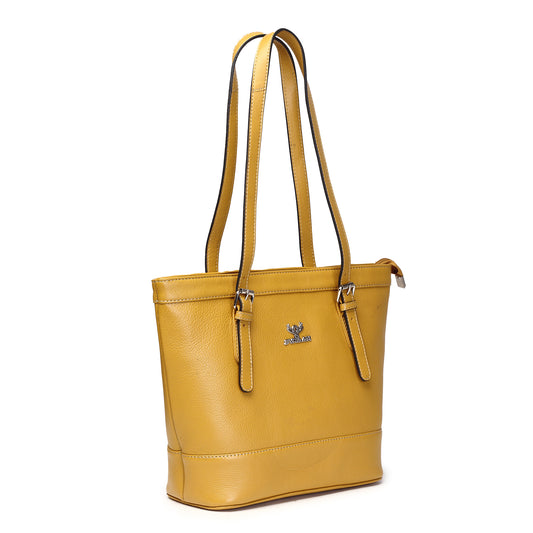 Syraah Yellow Full-Grain Leather Premium Tote Bag