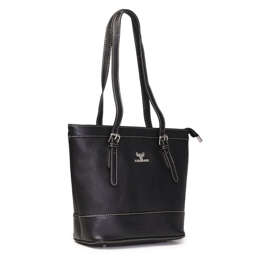 Syraah Black Full-Grain Leather Premium Tote Bag