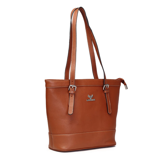 Syraah Tan Full-Grain Leather Premium Tote Bag