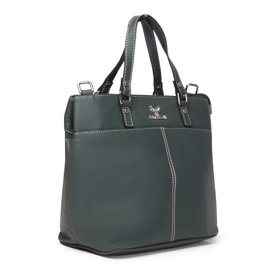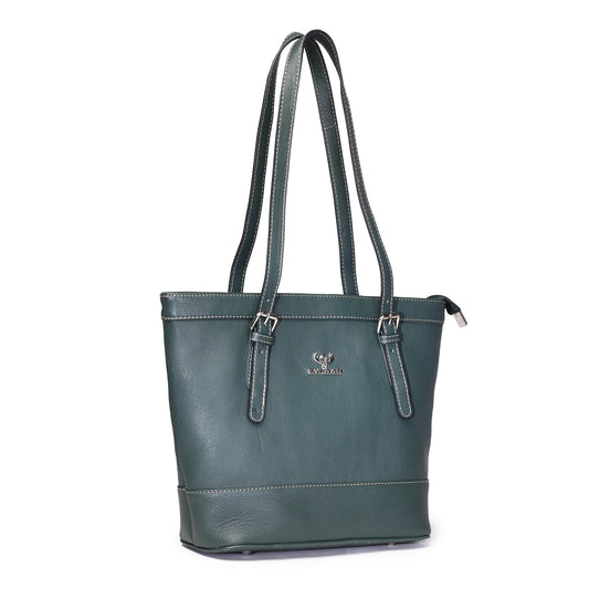 Syraah Green Full-Grain Leather Premium Tote Bag