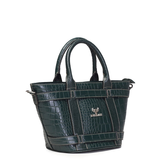 Syraah Green Croco-Print Premium Full-Grain Leather Tote Bag