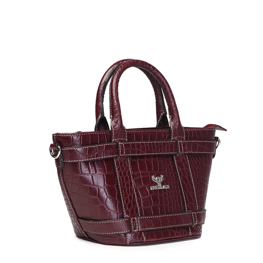 Syraah Maroon Croco-Print Premium Full-Grain Leather Tote Bag