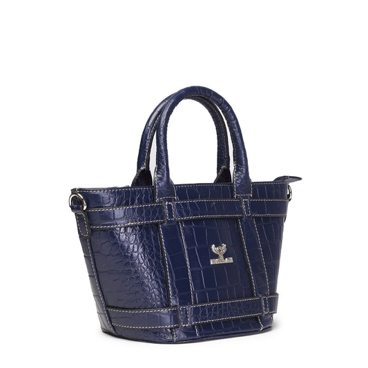 Syraah Blue Croco-Print Premium Full-Grain Leather Tote Bag
