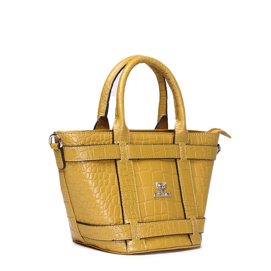Syraah Yellow Croco-Print Premium Full-Grain Leather Tote Bag